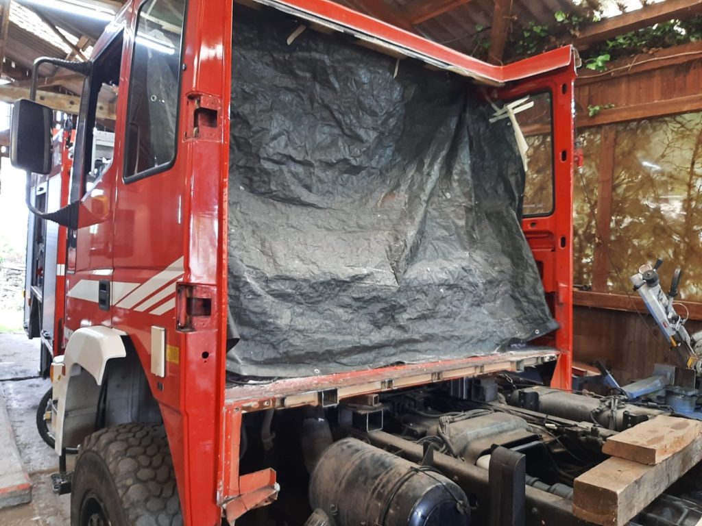 Eine Besonderheit ist das GFK-Dach im hinteren Bereich des Fahrerhauses, das ursprünglich aufgrund der Kuhle für die Feuerwehrleitern vorhanden war. Dieses GFK-Dach wurde im Zuge des Umbaus durch ein Blechdach ersetzt.