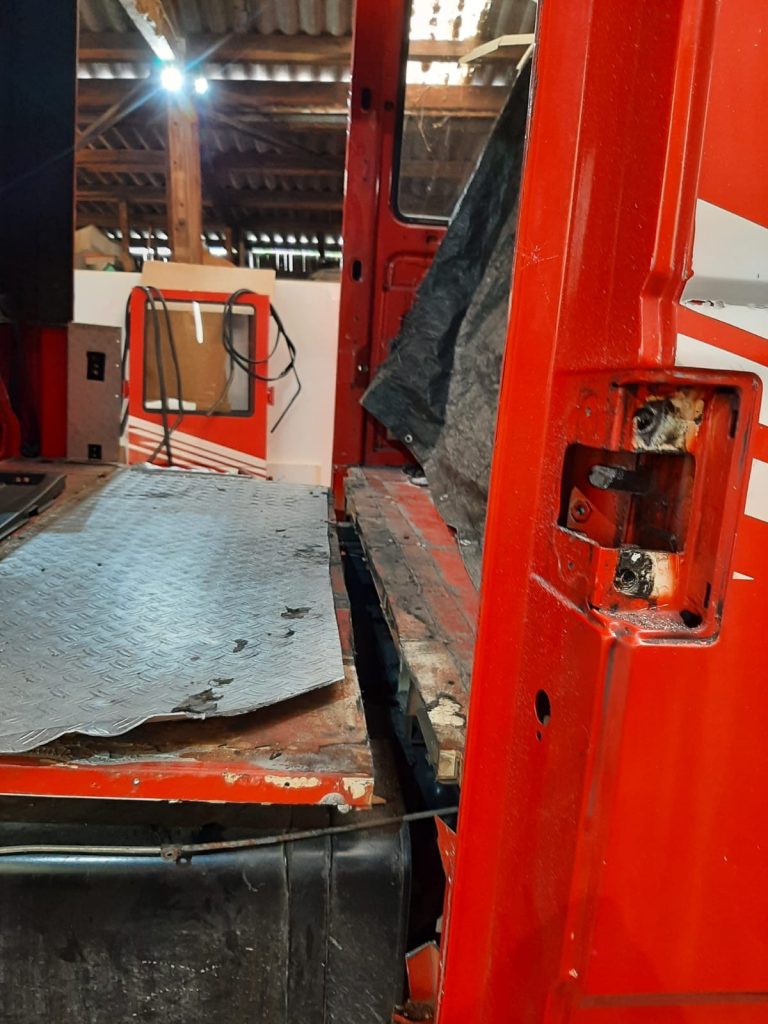 Im nächsten Schritt wurde das Fahrerhaus leer geräumt und anschließend gekürzt. Als Schnittlinie diente der erste Falz der zweiten Tür.